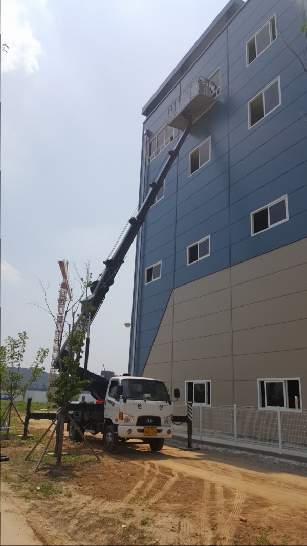 외벽공사,유리공사,간판공사,페인트공사,기타등등 공사벽면에 작업대를 최대한 가까이 밀착 시켜