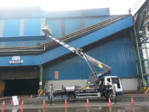태우고 고소 작업을 할수 있는 고소작업차 입니다.