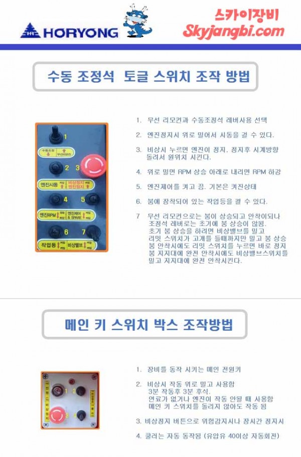 고소작업차 수동 조정석 버튼 동작및 키박스 그림 설명서 > 스카이자료