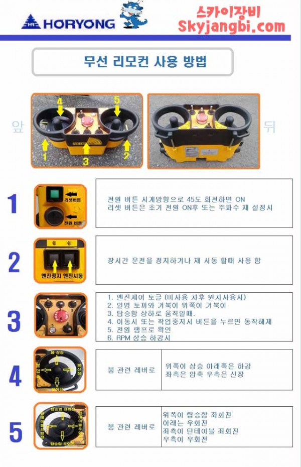 스카이장비차 고소작업차 무선 리모컨 그림 설명서