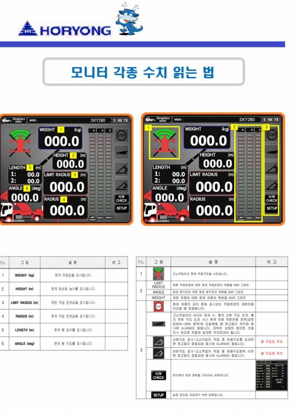 (신형)스카이장비 고소작업차 안전장치 모니터 그림 사용설명서